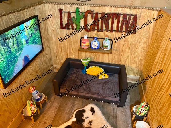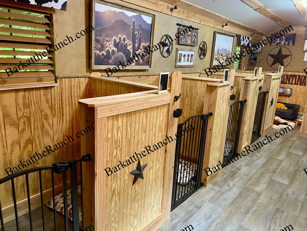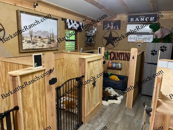 All the comforts of home, western style! Upgraded Individual suites for well mannered dogs under 20 pounds. Individual private suites in a home environment which Includes access to sofa, tv , refrigerator for fresh foods and large private play and potty areas.